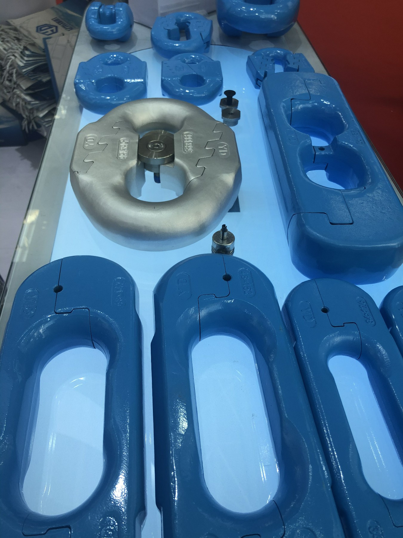 一来到亿东的展位,就被独特的蓝色接链环所吸引,根据小编的详细的了解,亿东煤机从事煤矿接链环生产已经有了近30年的历史,所使用的接链环材料采用德国进口钢材,强度等级远超DIN标准,做到了真正的替代进口产品。